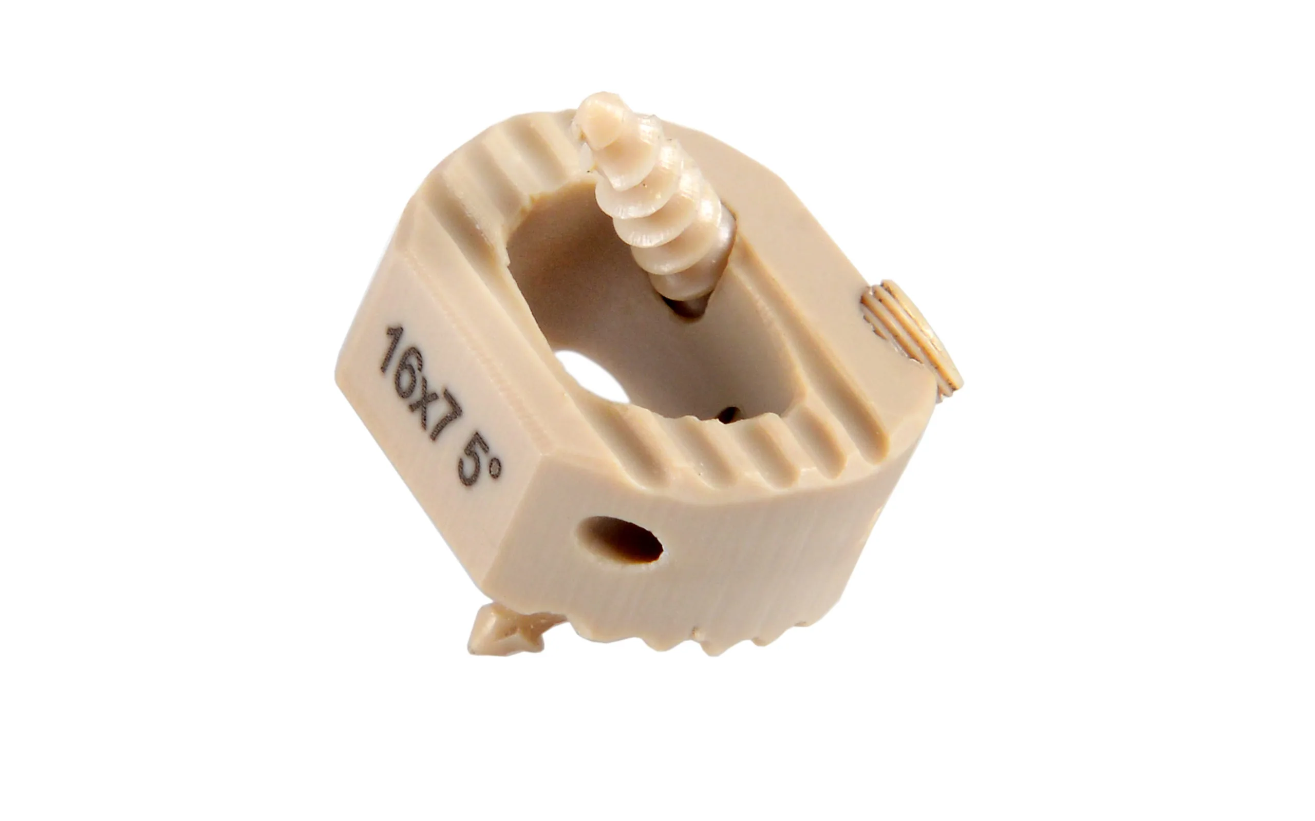 Este o coliva cervicala din material PEEK vizibil pe raze X, la care se potrivesc suruburi PEEK si suruburi de titan, dar se poate implanta si fara suruburi. Suprafata e zimtata, si are o gaura mare pentru altoirea oaselor. Datorita materialului special PEEK, implantul este vizibil pe raze X. Incazul incare se folosesc suruburi PEEK, suprafata operata se poate supune si la RMN fara probleme. Partea inferioara zimtata si partea superioara anatomica garanteaza o fuziune stabila.